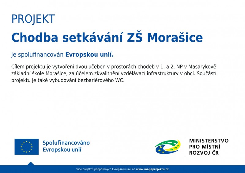 Upozorňujeme občany, že byla zahájena rekonstrukce pavilonu C v MŠ Morašice. Pro veřejnost je zahrada uzavřena až do května 2025. Děkujeme za pochopení.