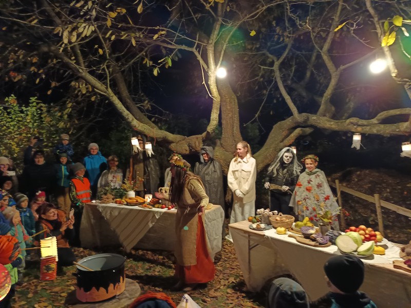 U zvoničky jsme přivolávali podzimní královnu – díky jejím pomocníčkům jsme ji nakonec našli a společně s ní uvařili polévku z darů podzimu pro všechny dušičky. Na oplátku nás podzimní královna odměnila tradičním dušičkovým pečivem.