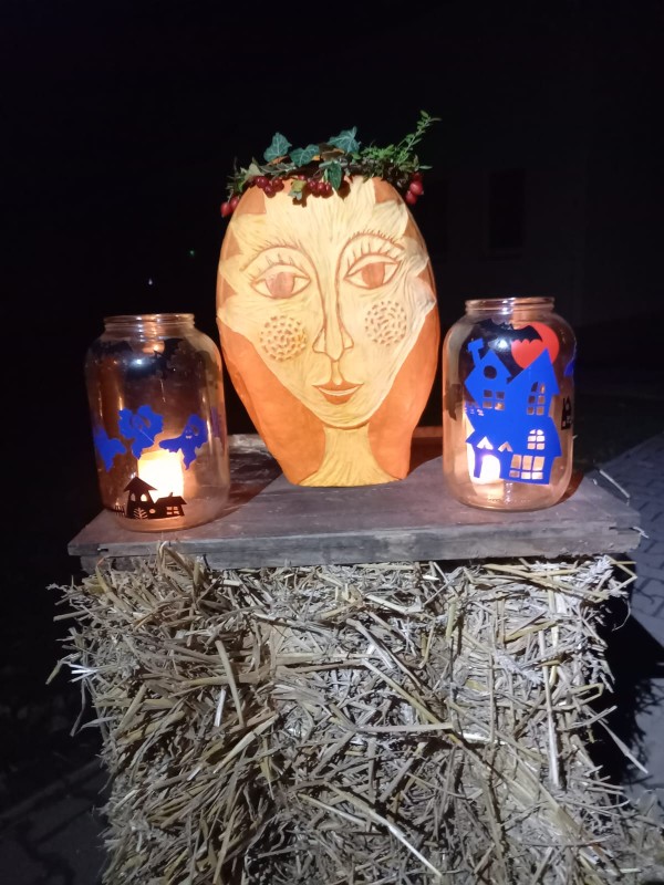 V pátek 31. října jsme se sešli v hojném počtu na návsi a ze svíček vytvořili srdíčko u pamětní desky padlých. Poté jsme se vydali průvodem vesnicí – cestu nám zpříjemňovala světýlka a blikající lampiony. U některých domů nás potěšily i krásné podzimní světelné dekorace.